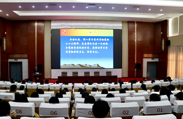 为学习好、宣传好、贯彻好党的二十大精神,根据学校党委总体安排,3月2日上午,学校理论专家宣讲团成员、校党委巡察员李裕福面向学工队伍作了《认真学习宣传贯彻党的二十大精神,守正创新为党育人为国育才》宣讲报告,学生工作部全体教师、全体辅导员、班主任及学生代表共200余人参加了此次宣讲。